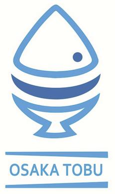 そしてまた、「上部は『魚の頭』をかたどり、食を連想させる『おにぎり』のイメージも重ねた。右上の点は『目』で、『目利き』の確かさを表した。中部は『魚の身』を表現。新鮮で質の良い水産物を扱っていることを示す。下部は『魚の尾』と食卓に並ぶ『椀』の象徴。OSAKA TOBUの上下のラインは、お箸をイメージ」とのことです♪